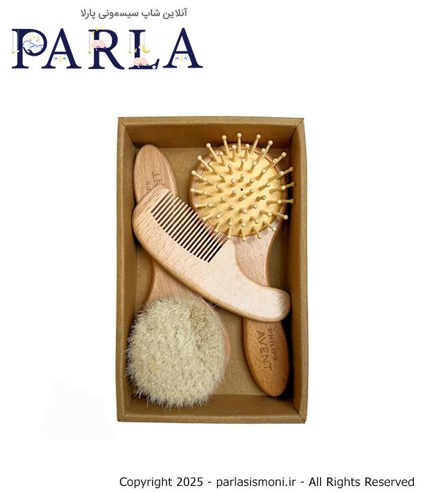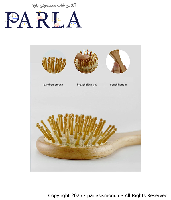 شامل سه تکه: برس الیاف طبیعی، برس دندانه چوبی، شانه چوبی